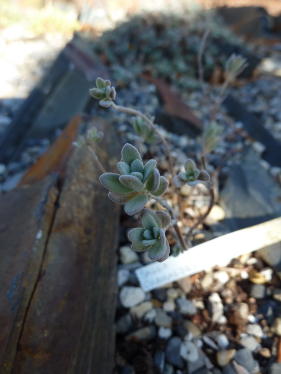 S. chamaedryoides spreads by stolons and by seed but it isn't too aggressive! A wonderful mass of grey in the rock garden; highlighted by blue flowers floating above the foliage - a great shrub.