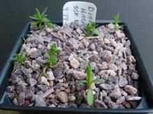 Delosperma ashtonii germinated in 9 days.  But subsequent placement outside has yielded very little growth.  Delosperma are usually very fast growers, at least in warm weather…