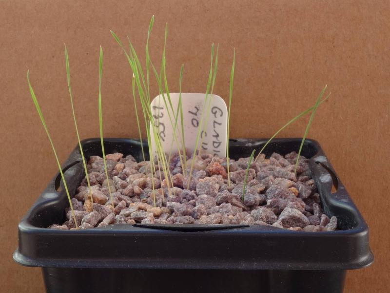 Gladiolus cunonis.  From 2011 seed, emerged in 24 days.  Every seed germinated!