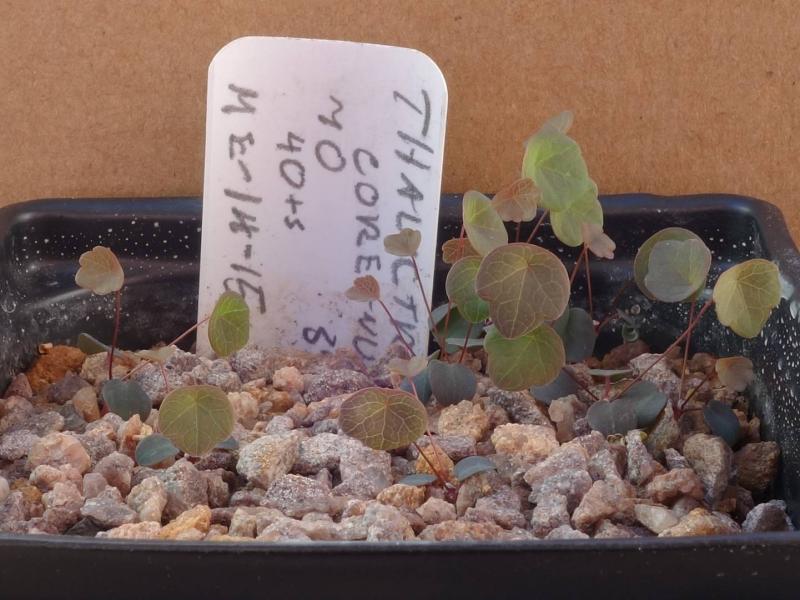 Initially, I wondered if I had gotten this one mixed up.  With the terete (round) cotyledons and the seemingly "thorny emerging stem" between them, it looked more like a cactus.