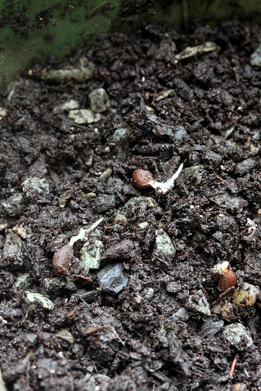 (I tipped out some mix and lifted/placed a few seeds on their sides to show the radicles....)