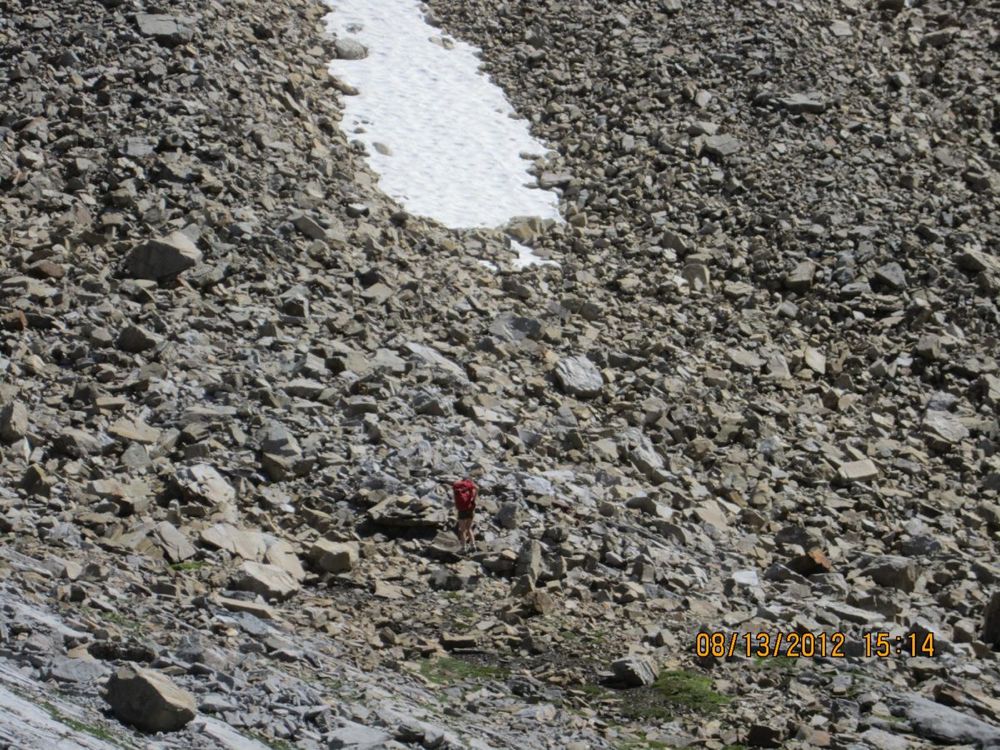 As always the big scree slope at the end of the valley dominates the view from a certain point, and must be explored.  (One can also continue up the scree slope, and hang a right at the top of the rock band to make a loop of it on the Red Ridge "trail".)