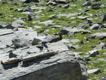Among the wildlife we saw were marmots, pikas, golden-mantled ground squirrels and this mama white-tailed ptarmigan, with her well-camouflaged brood of 5:
