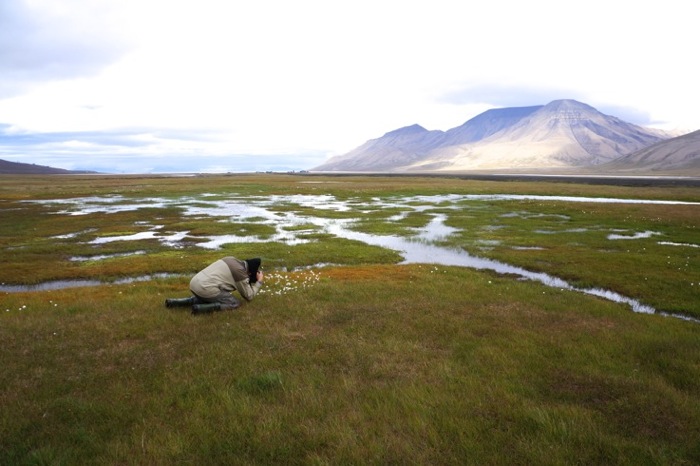 In the pic with the man(?) kneeling with the Eriophorum, is that ground dry enough to not get your knees all wet? Maybe he's wearing waterproof pants?