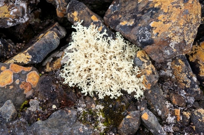 Breinosa, at about 600m it isn't many plants. The rocks are part of a vast block field. Up here only mosses and lichens grow (and the Svalbard poppy).