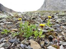 Tonestus (Haplopappus) lyalli is a common alpine in this area, where it might only be confused at first glance with Erigeron aureus. (On closer inspection, the leafy stems of T. lyallii and the different calyces (purple-hairy on E. aureus) and flower differences readily distinguish the two species.)