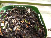 However not all seed in this pot is at that stage --some still have not germinated or are just starting to send out a radicle.