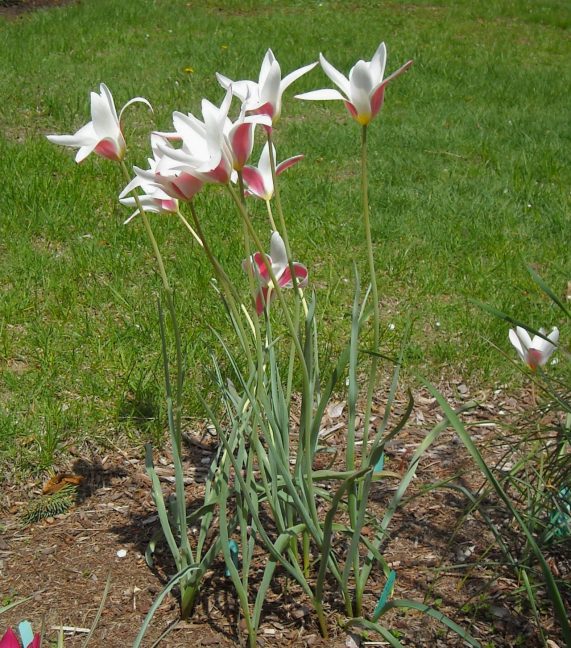 Surprised no one has started this before now as I am sure I am among the last people to have blooming tulips. Only two open yet...Tulipa turkestanica and Tulipa kaufmanniana.