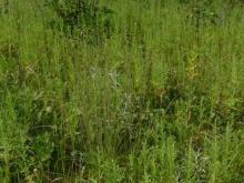 A sea of weeds (mostly Western ragweed and Foxtail) with just a spattering of native prairie flora. And Carpetweed (Mollugo verticillata)