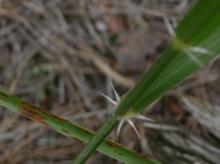 Indian Grass (Sorghastrum nutans) and a one foot high, very sparse and non-flowering (at this time) grass with an interesting star like ligule. Ligules tend to be an identifying characteristic in grass species. Any help here?