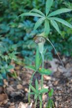 Cypripedium parviflorum flowered for the first time.  It is "caged" to keep it away from rabbits and squirrels -- too precious!