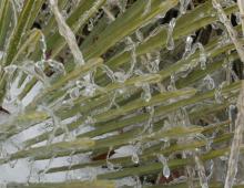 Yucca nana. The odd curls are the fibers that peel off the edges of yucca leaves, now coated with ice.