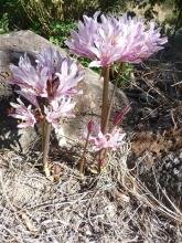 Back to my precocious Colchicum kesselringii; the flower on the left is the same one I showed taken 8 days ago, it has narrow pointed petals, the one on the right is a different form with larger flowers and wider rounded petals, just showing up.