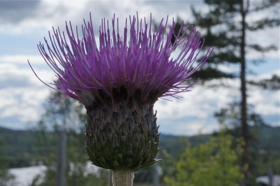 Every day I take a stroll in the "garden" here in the subalpine zone. The meadow is a former pasture used when the farmers (or rather small boys) herded their livestock (mostly milking cows) to graze in summer. My father-in-law used to be a "cowboy" in summer when he was young. At that time the landscape was open with very few trees. Now birch and spruce march in and cover the previous pastures, only a few sheep try to keep the shrubs down but don't suffice. I try to manage a small plot near our cabin by mowing once every year in late fall. I have also introduced some native plants that had disappeared or occur naturally in similar areas. The flowering meadow is attractive to insects too!