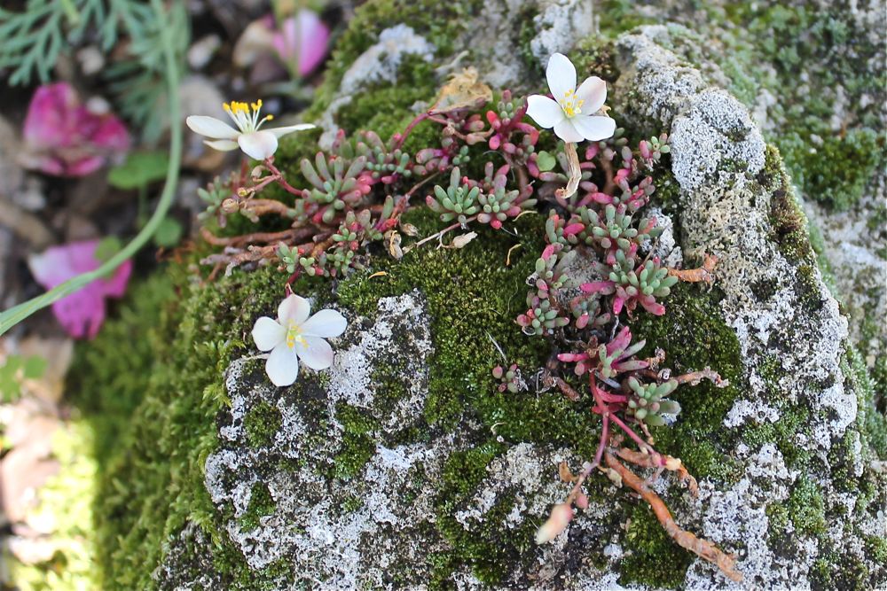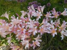 Lewisia cotyledon beautifully set for summer and a hint of blue in Lycoris squamigera.