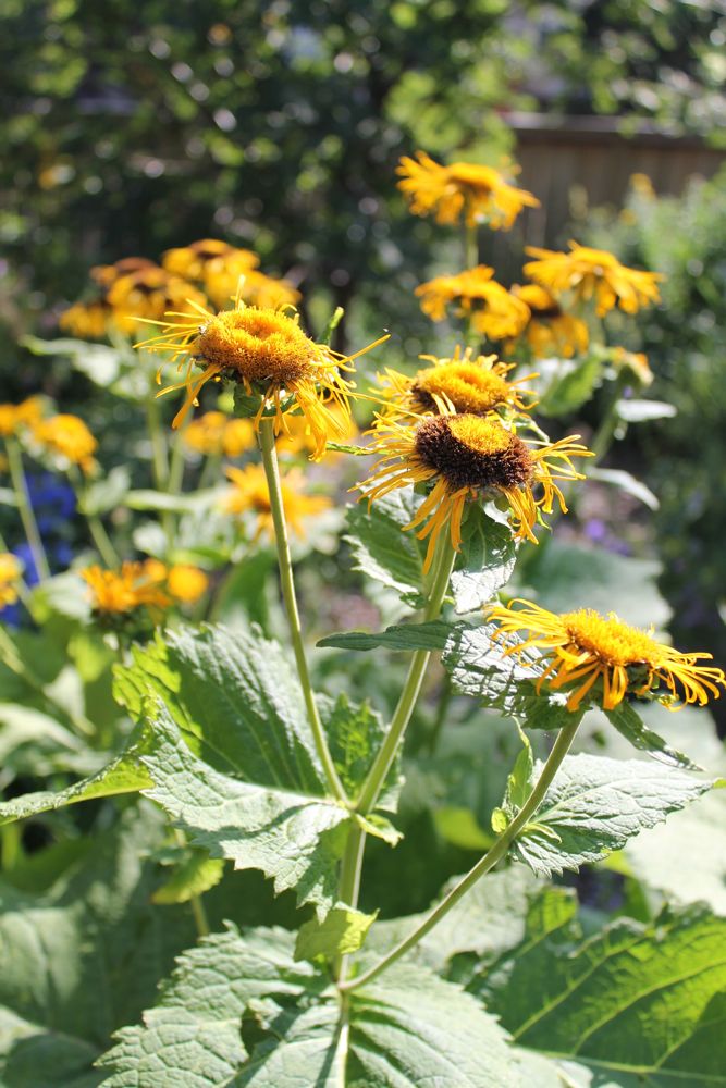 Telekia speciosa; the huge leaves that took a battering from hail earlier on have been replaced:
