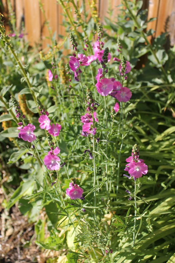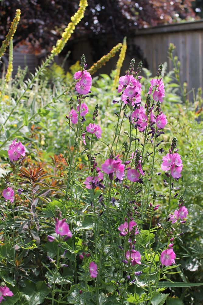 Sidalcea malviflora; daylily (the warm summer is favouring them - most didn't even bloom last summer); Allium flavum: