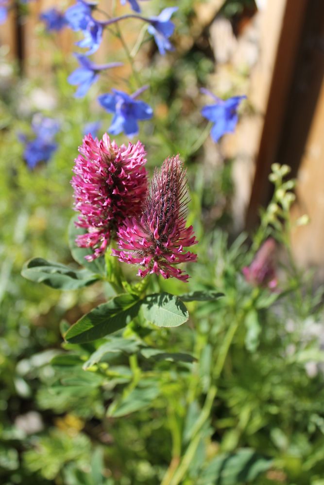 Trifolium rubens... much reduced in the last couple of years from its former glory since the jackrabbits have discovered it - apparently, it's very tasty!; a couple of seedlings have turned up this year, which I will move inside the fence to safety: