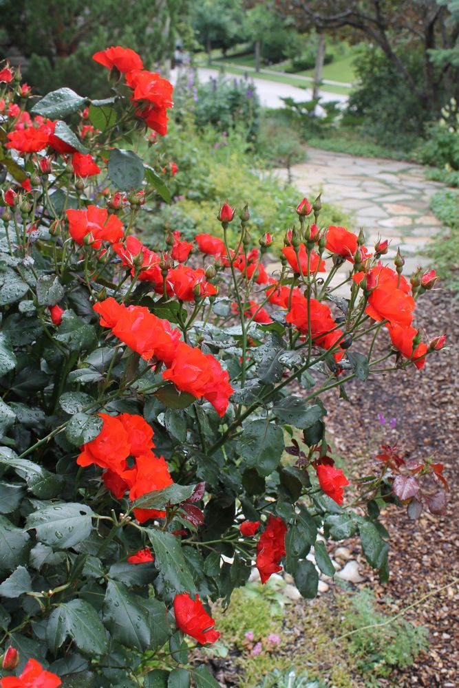 Rosa 'Amsterdam' is putting on its second big flush; I think it's a really spectacular rose with gorgeous foliage and blooms (notwithstanding that it was shipped as something else, that was supposed to be double and fragrant!):