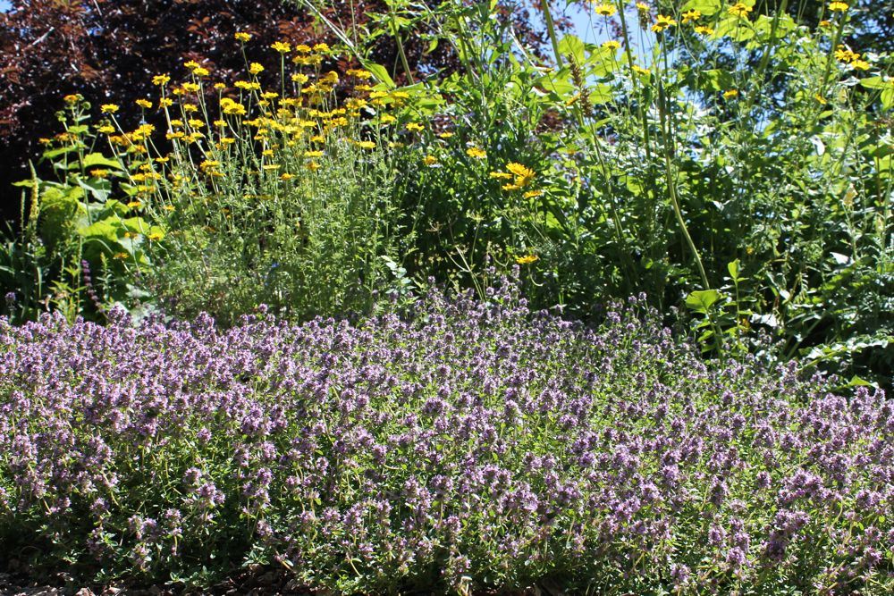 Here the thyme is done for the season - and almost all the bees disappeared. However bumblebees still hang around and visit everything in flower.