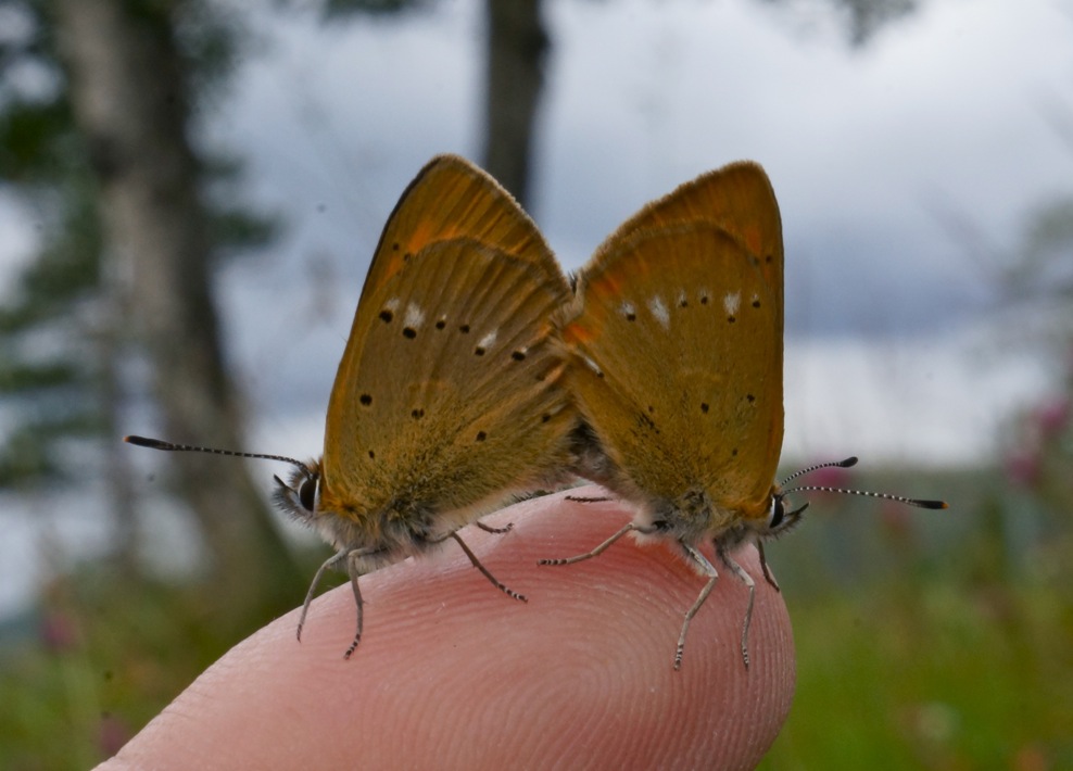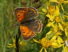 The Scarce Copper isn't scarce here but common. Here are both the male and the female. Hopefully we get a new generation next summer!