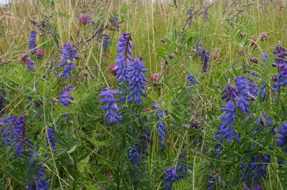 Solidago virgaurea is also very common. The lowland forms become 1m tall but the alpine forms have only a few flowers. Here they are inbetween those. Vicia cracca do spread but gives a nice colour. Cirsium heterophyllum is coarse and dominating but the flowers are very attractive for insects and the seeds are bird food in the autumn.