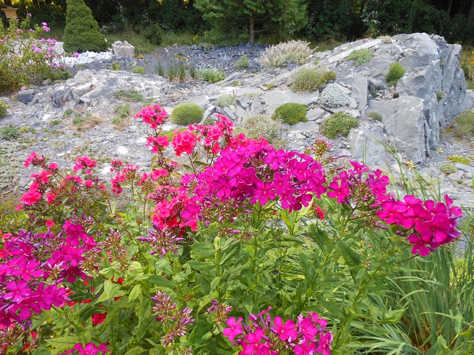 Dark night of the rock gardeners soul. Tell me we aren't on target for a summer heat record in the northeast. Sunshine every day does make for a gorgeous summer however. I'm quite stingy with the hose but it is the only thing between these bright Phlox cultivars and severe dessication.