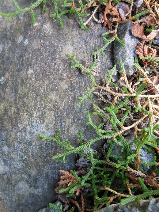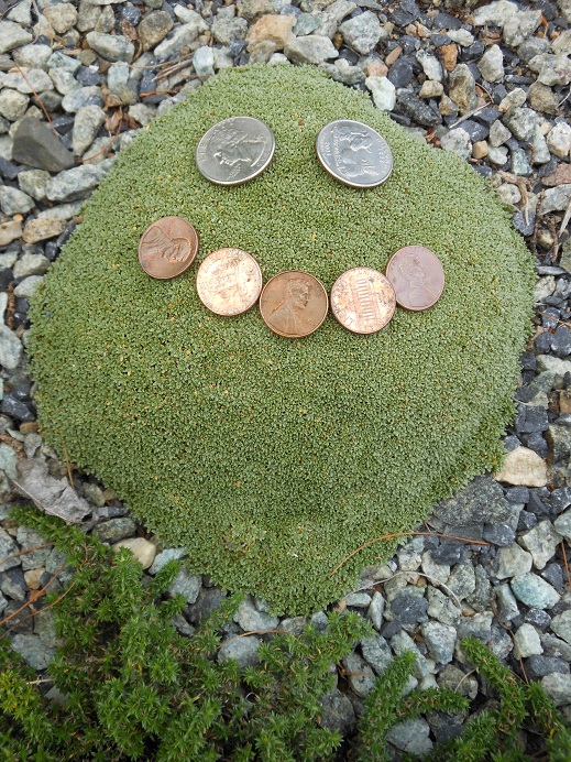 And here's another look at that trough. On the north side under the spruce is Saxifraga 'minutifolia' and little plastic piggies. Below is London Pride; just out of the photo is the tan line (ouch!). The second is a photo of a weird little Selaginella I found in the arid Uintah foothills growing among Ephedras and Echinocereus. I call it "cactus moss".