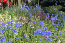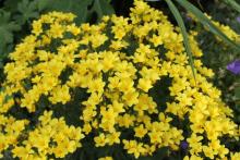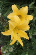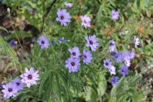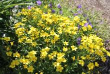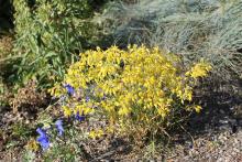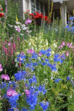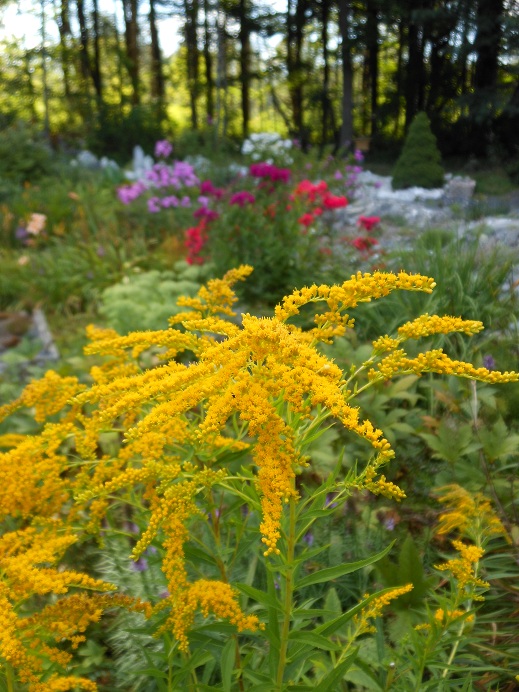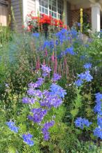 Love your delphinium masses, Lori! Amazing how much bright color you have. We have more muted colors this time of year, but still, lots is blooming. Your Dianthus knappii is not nearly as bright a yellow as ours. I am very fond of this, and have it in several spots. There seems to be a more compact straing being sold recently. We mostly have pale clematis blooming this time of year--except for some re-bloom on the integrifolias. Our summer has not felt short at all: we have had 30 days over 90F, and no end in sight--interspersed mercifully with a few days in the 80's....