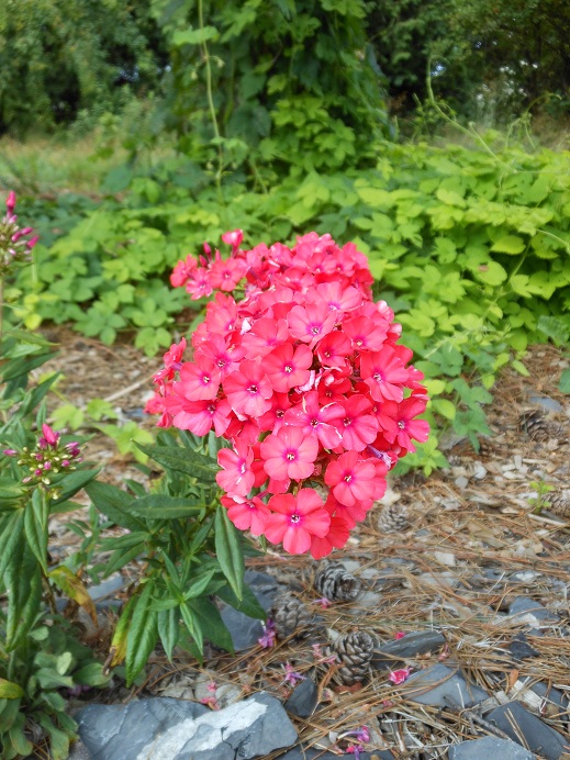 A low growing Phlox paniculata in hot pink/orange. It was a hand-me-down so I don't have a name. Is it 'Red Riding Hood'?