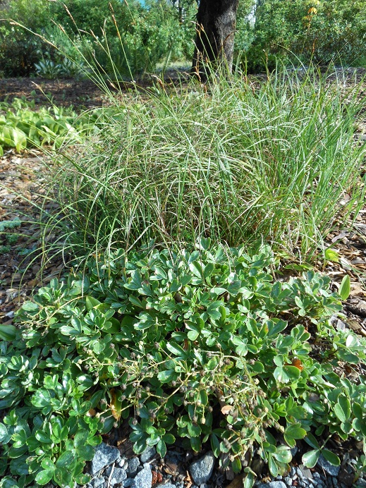 Corydalis quantmeyeriana 'Chocolate Stars' growing with cyclamen and Astelia nervosa. The corydalis is new to me and I haven't yet seen the flowers, but what foliage! I rather like this combination.