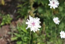 Catananche caerulea, normal colour and white that popped up from self-seeding: