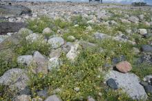 Only a few, common plants survive the hard grazing: Hieracium peleteranum and Scleranthus perennis on drier ground, Matricaria maritima, Potentilla anserina and Sagina nodosa on moister ground.