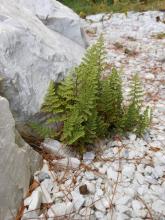 One of a small number of choice small ferns currently here is this Chielanthes from the Rockies. The fronds are generally faced to the east and perpendicular to the north side of the adjacent rock. It seems a thinking fern.