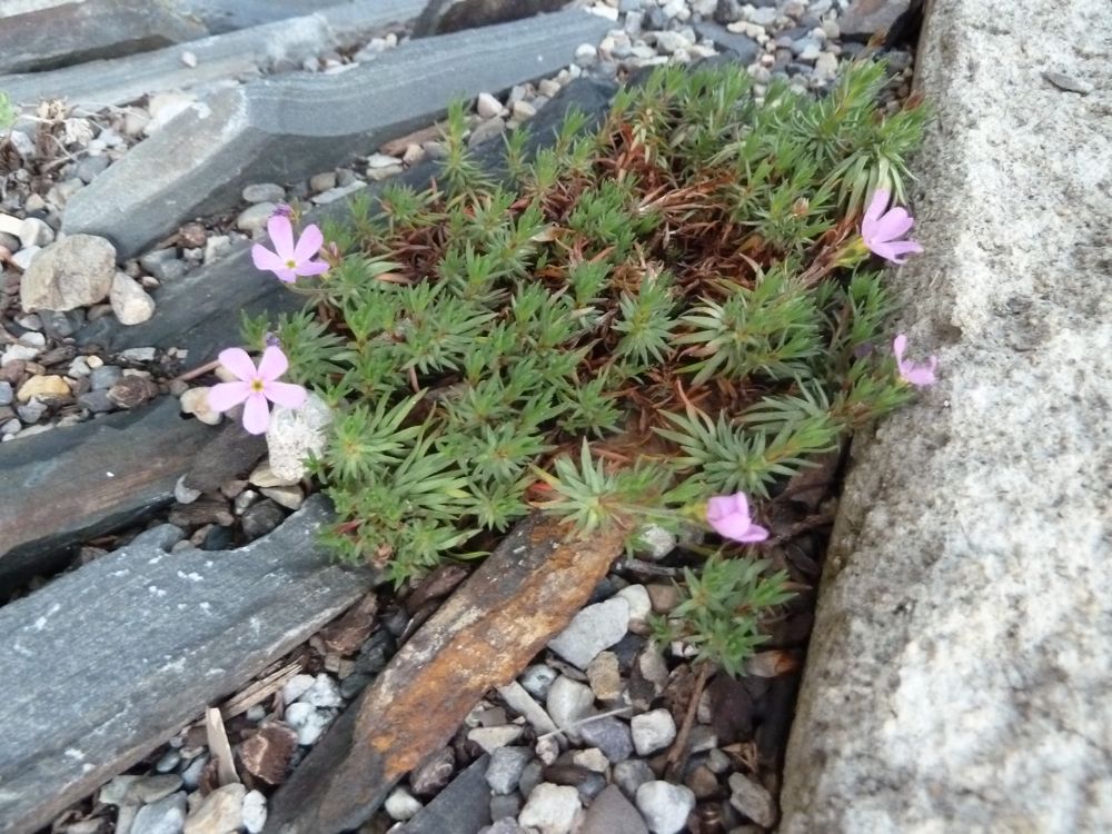 A bit of bloom on Silene acaulis, also in a trough: