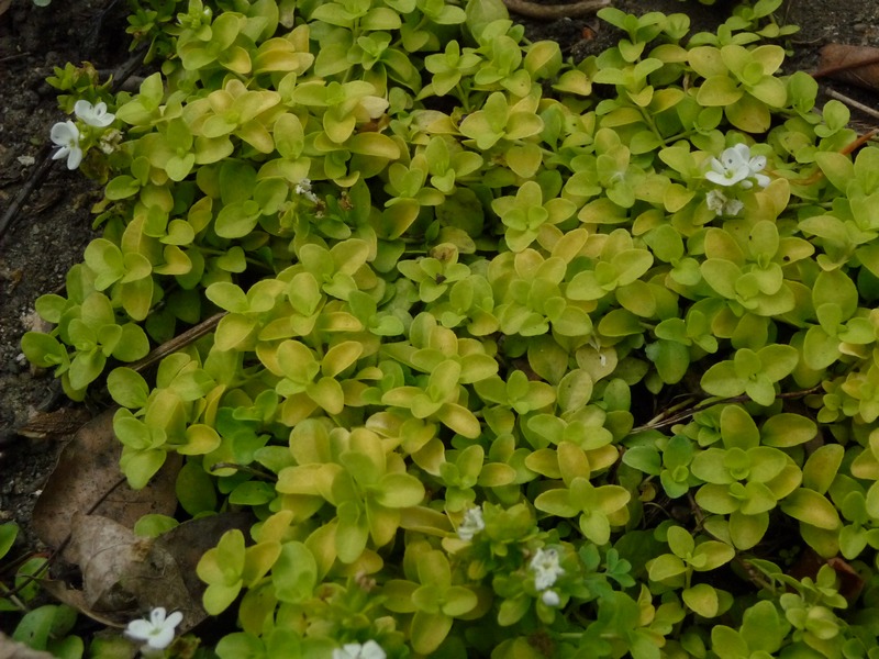 A yellow leaf creeping veronica, very nice even though I don't know the name. Thalictrum aquilegifolia.
