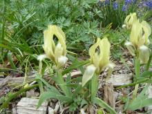 Moving along, Calochortus (reliable small CV) and Iris x Dardanus