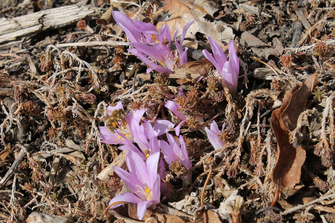Fri, 03/29/2013 - 5:31pmGreat to see the wonders of spring, all. Here's Bulbocodium vernum on a southwest-slope in the front yard, complete with honeybee: