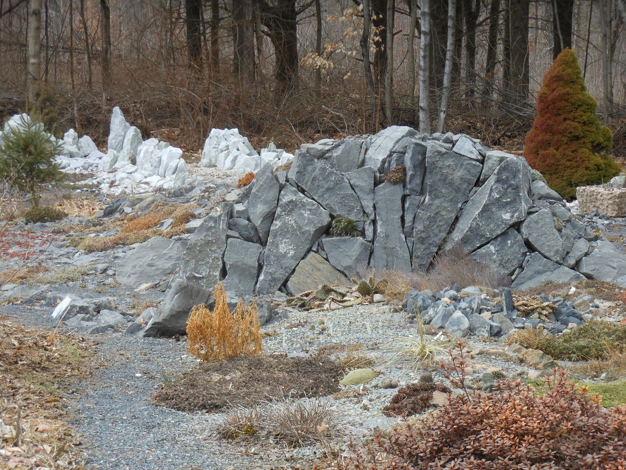 4,5 a couple of rock beds and berms in a different part of the acreage- these are in the moister part of the property, and (not counting the shovelling mentioned above) get the deepest snow