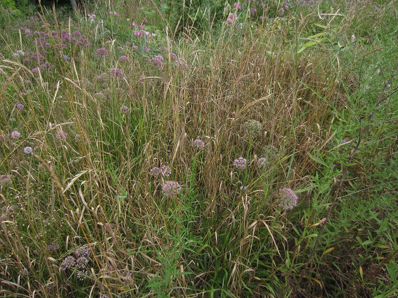 Mon, 08/19/2013 - 6:29pmRick, the images of Kentucky blue grass piercing Scilla bulbs is an eye-opener. Now I worry I have much more to content with, on my large Allium garden overhaul (after 2-1/2 years of neglect and no weeding). The primary invasive is from aggressive stoloniferous field grass (don't know what genus and species) that completely envelope plants; I've been trying to loosen soil and pull the horizontal stolons for years, but without success, the only answer is a complete and thorough spading. Now I fear, I shall have to look closely, washing soil off of bulbs and rhizomes, to make sure it's not harboring a penetrating stolon like those that you show. Here's a couple pics showing just how engulfed in grass and goldenrod some of the Alliums have become, looks sort of like a high-grass prairie view... I have the work cut out for me.