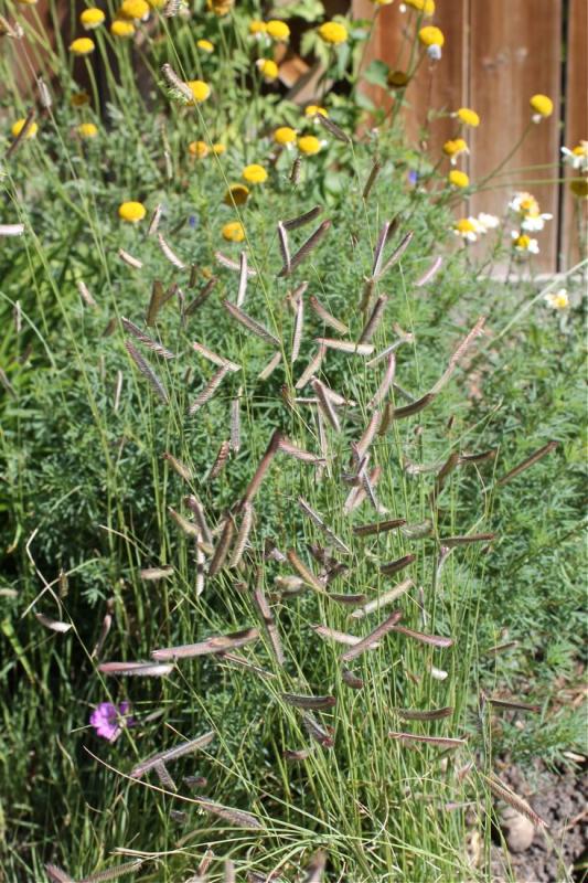 Nigella hispanica and Ratibida pinnata with Melica ciliata in the foreground. The birds have found the Melica seeds tasty, so they've been nibbled on.