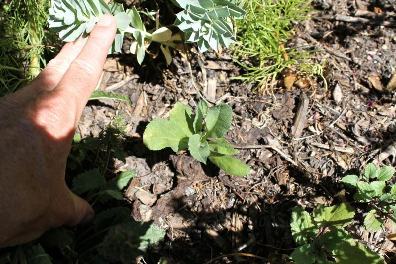 Tthe first flowering of Liatris cylindirica from seed, and when is this Silybum marianum going to stop growing! It's 33 inches wide! And nothing does better than a volunteer seedling - this one Penstemon hirsutus var. pygmaeus.
