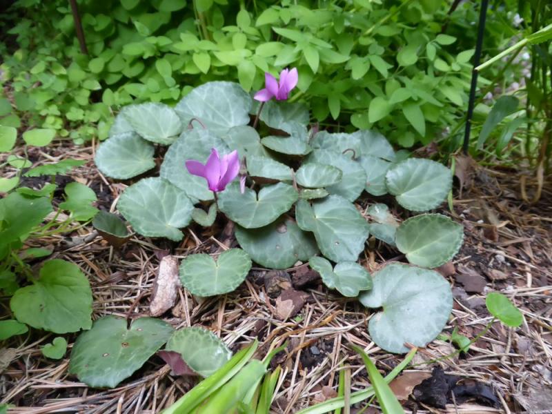 Cyclamen purpurascens, starting to bloom: