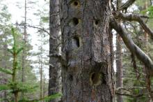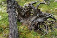 An old pine tree - visited by several woodpeckers, and a fallen one. Such dead pine trees are called "furugadd" in Norwegian and are very important for animals, fungi, mosses and lichens.