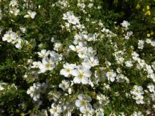 Campanula persicifolia 'Moerheimii'; Potentilla fruticosa Abbotswood':
