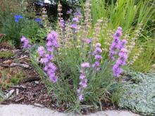 Delphinium brunonianum; Agastache pringlei; a native Liatris... must figure out which; Campanula x carpatica 'Thor Pedo':