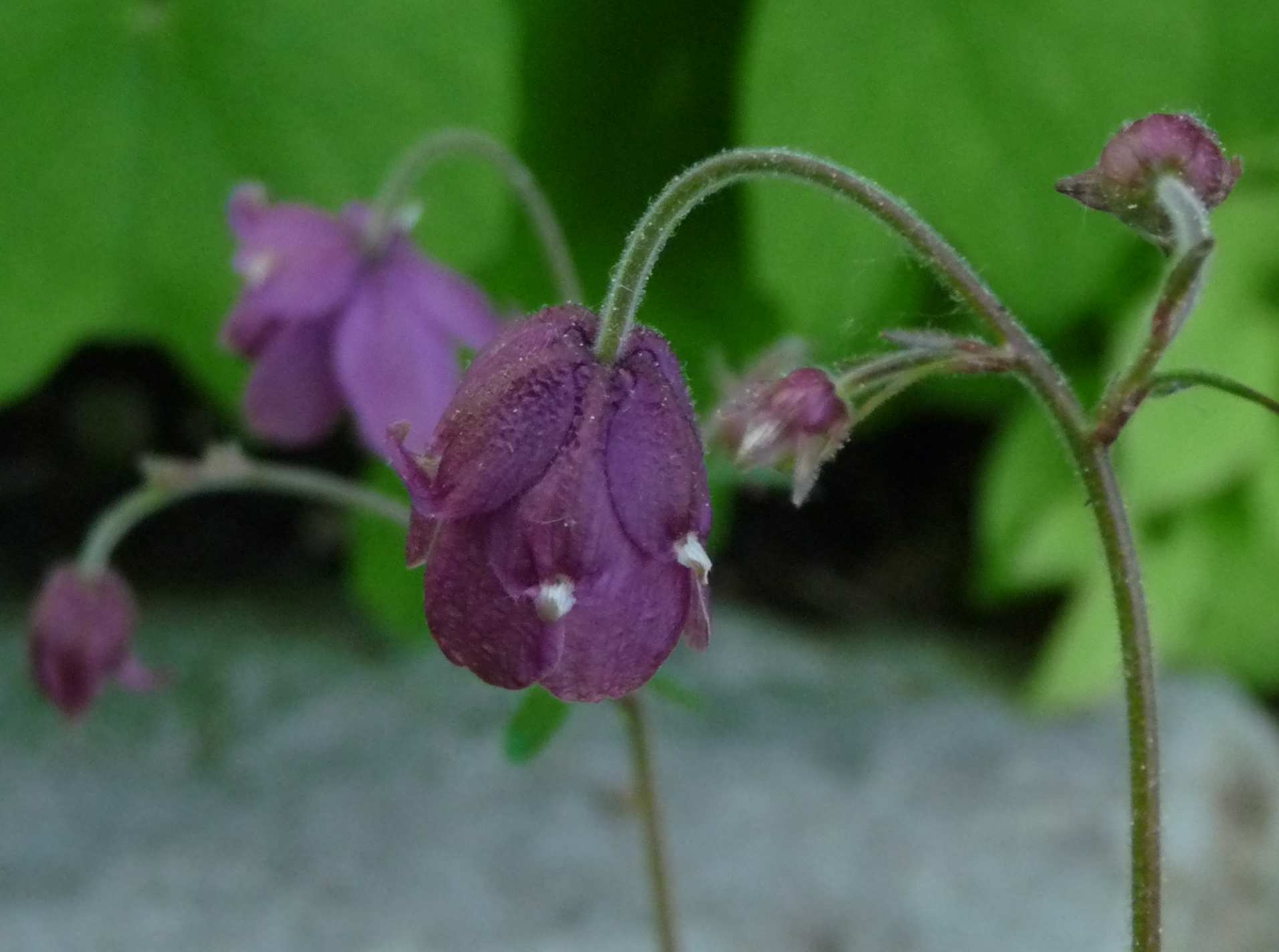 Aquilegia ecalcarata. Buds with white tipped sepals.