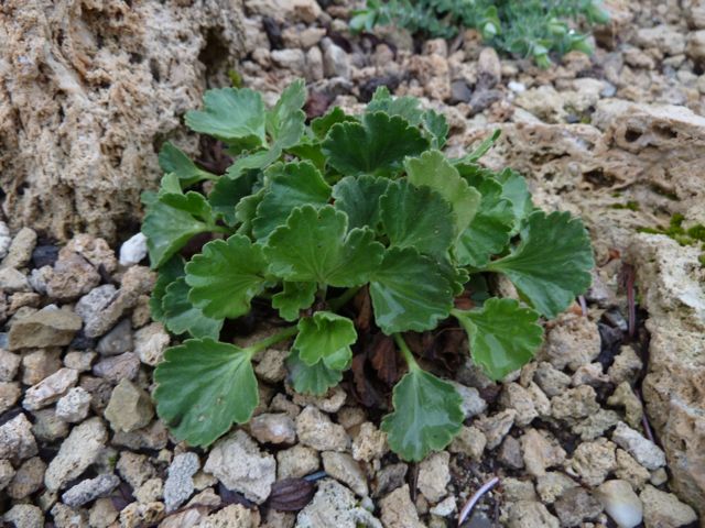 Convolvulus boisseri strating to bloom in upper crevice bed.