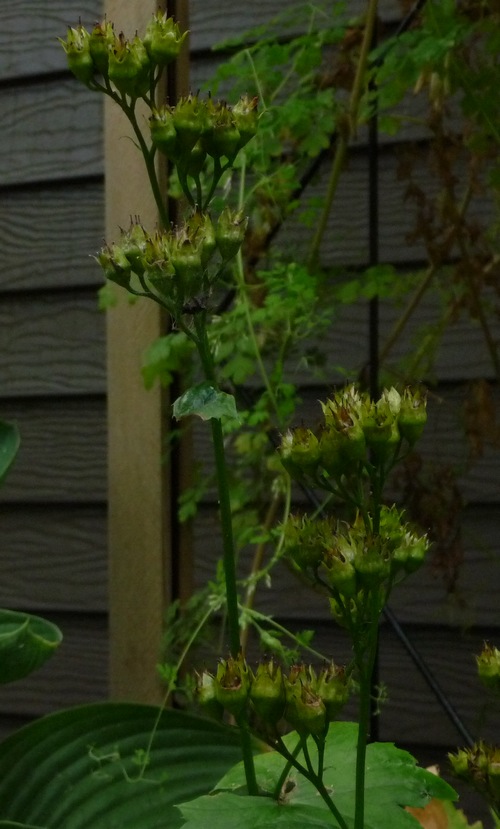 Regarding Peltoboykinia watanabei, how many thousand seeds would you all like? the flowers are not anything to rave about, but the seed pods can be interesting in a dried bouquet. I usually let the seed pods ripen so I can use them, but try to retain as much seed in the upright pods as possible when I cut them. Still, many hundreds get dropped in the garden each fall, but I have never had a volunteer. The seed starts easily in a pot, though. And, in its first year it is very vigorous. But as it matures it seems content to be well a behave stalwart. Maybe because I have it growing in fairly dry shade.