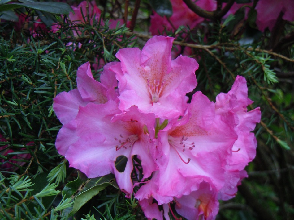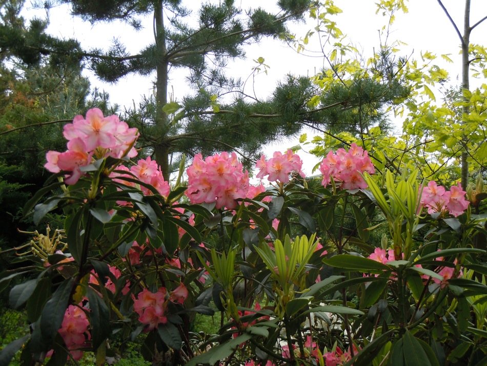 Here it is rhodo-time. Maybe about 100 specimens in flower now. Here are some.